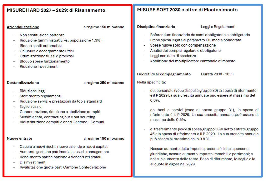 Per poter risanare le finanze cantonali nel medio termine servono soluzioni concrete. E proprio per questo motivo, la Direttiva dell’UDC Ticino ha presentato un documento curato dal Capogruppo in Gran Consiglio Sergio Morisoli, che non si limita a criticare — come fanno altri — ma presenta idee concrete, numeri, priorità, un percorso. Una base di documento che dovrebbe far proprio il Governo cantonale. “Non siamo in Consiglio di Stato, ma almeno abbiamo una direzione chiara. E vogliamo dare il nostro contributo, perché le critiche — anche dure — devono sempre essere seguite da proposte costruttive spiega Marchesi. “E diciamolo chiaro, senza giri di parole: se tra 16 mesi saremo in Consiglio di Stato, questo documento diventerà la nostra bussola per risanare davvero le finanze cantonali. Non sarà un esercizio accademico, ma un programma d’azione concreto. Il documento è stato approvato all’unanimità dal Comitato cantonale e assunto come linea guida di partito.